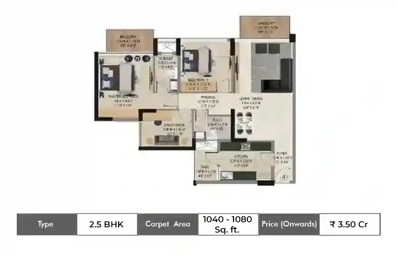 | 2 BHK+T | 1040 - 1080 Sq. Ft. | On Request |