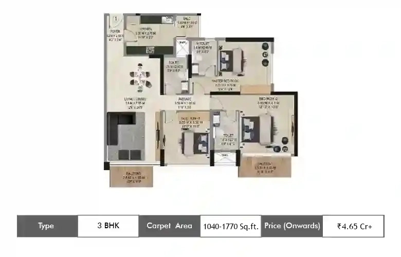 | 3 BHK | 1300 - 1770 Sq. Ft. | On Request |