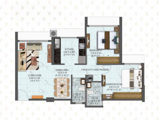| 2 BHK | 659 Sq. Ft. | On Request |