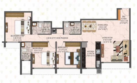 | 3 BHK | 984 Sq. Ft. | On Request |
