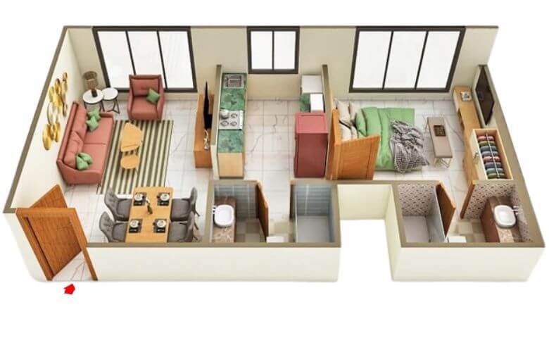 | 2 BHK | 620 Sq. Ft. | On Request |